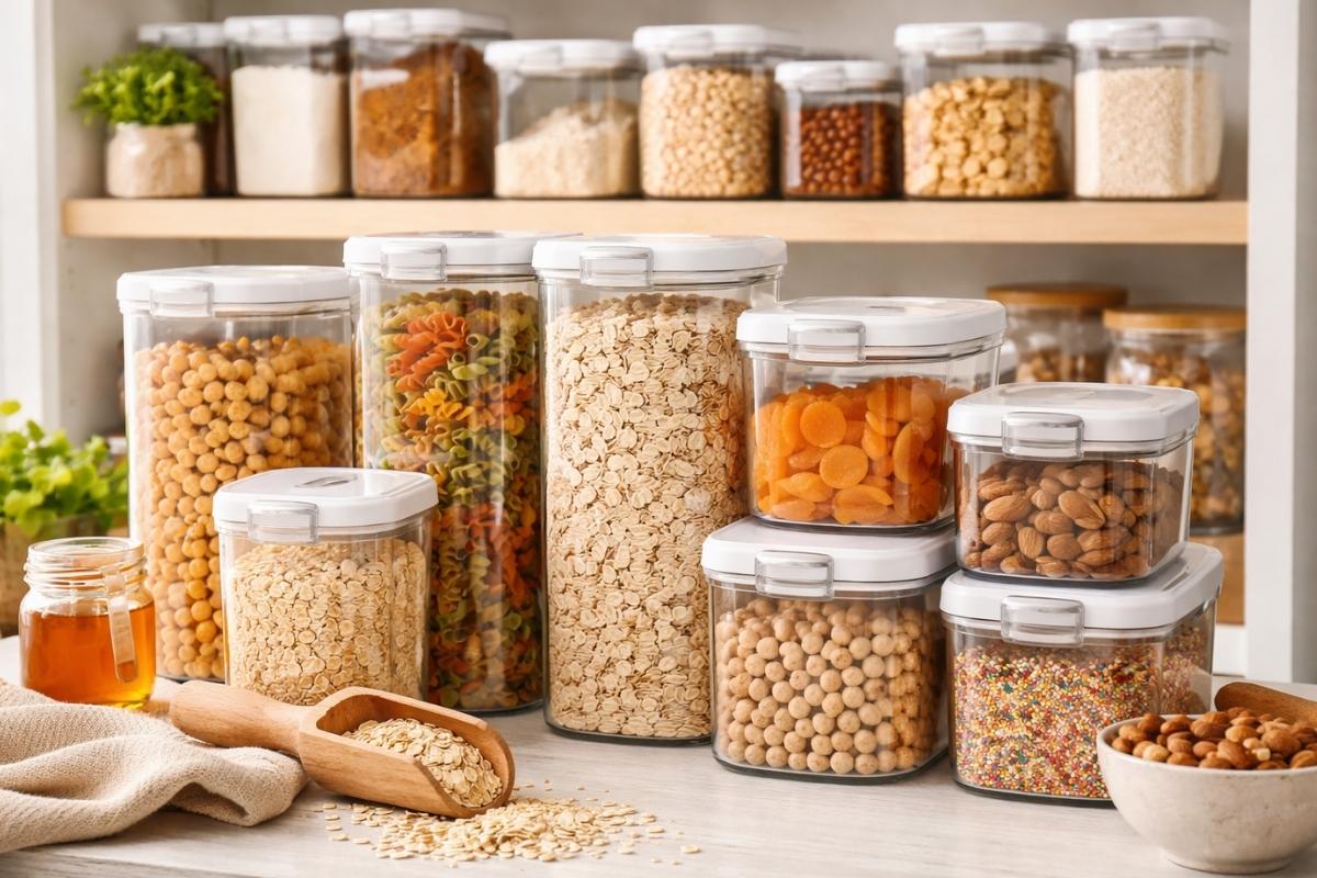 Clear containers help maintain consistency across shelves and reduce visual clutter. They also keep food fresh for longer and make it easier to monitor when items need to be restocked.
