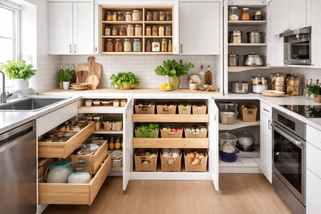 Smart kitchen organization systems usually combine storage containers with smart placement.