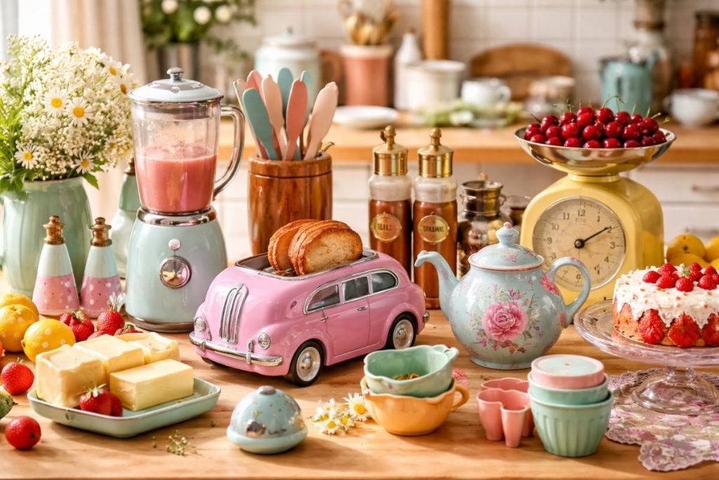 Even a few carefully chosen pieces can introduce vintage influence without completely redesigning the kitchen.